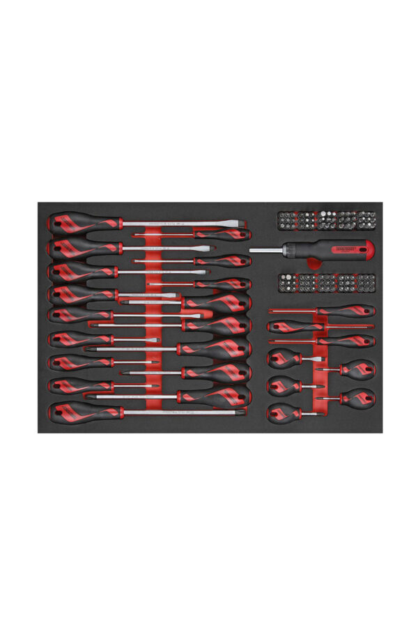 Fyller ut 57cm av lådans 63cm bredd i PRO serien vilket ger 3cm luft på höger resp vänster sida i lådan. Om man vill fylla ut detta utrymme rekommenderas Tengtools tom oskuren foam EVA01.