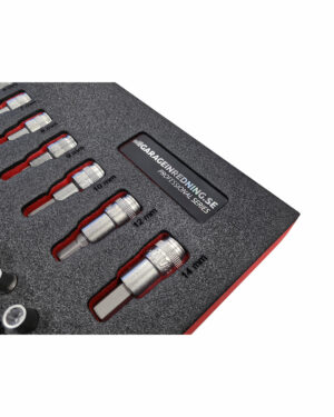 Fyller ut 57cm av lådans 63cm bredd i PRO serien vilket ger 3cm luft på höger resp vänster sida i lådan. Om man vill fylla ut detta utrymme rekommenderas Tengtools tom oskuren foam EVA01.