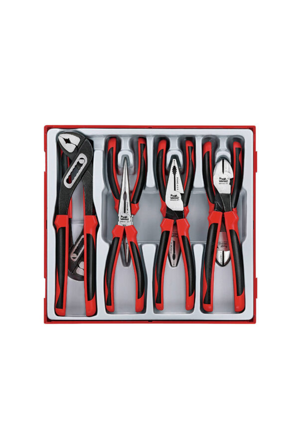 Verktygssats med 8 tänger: två motortänger, två kombinationstänger, två sidavbitare och två flacktänger.