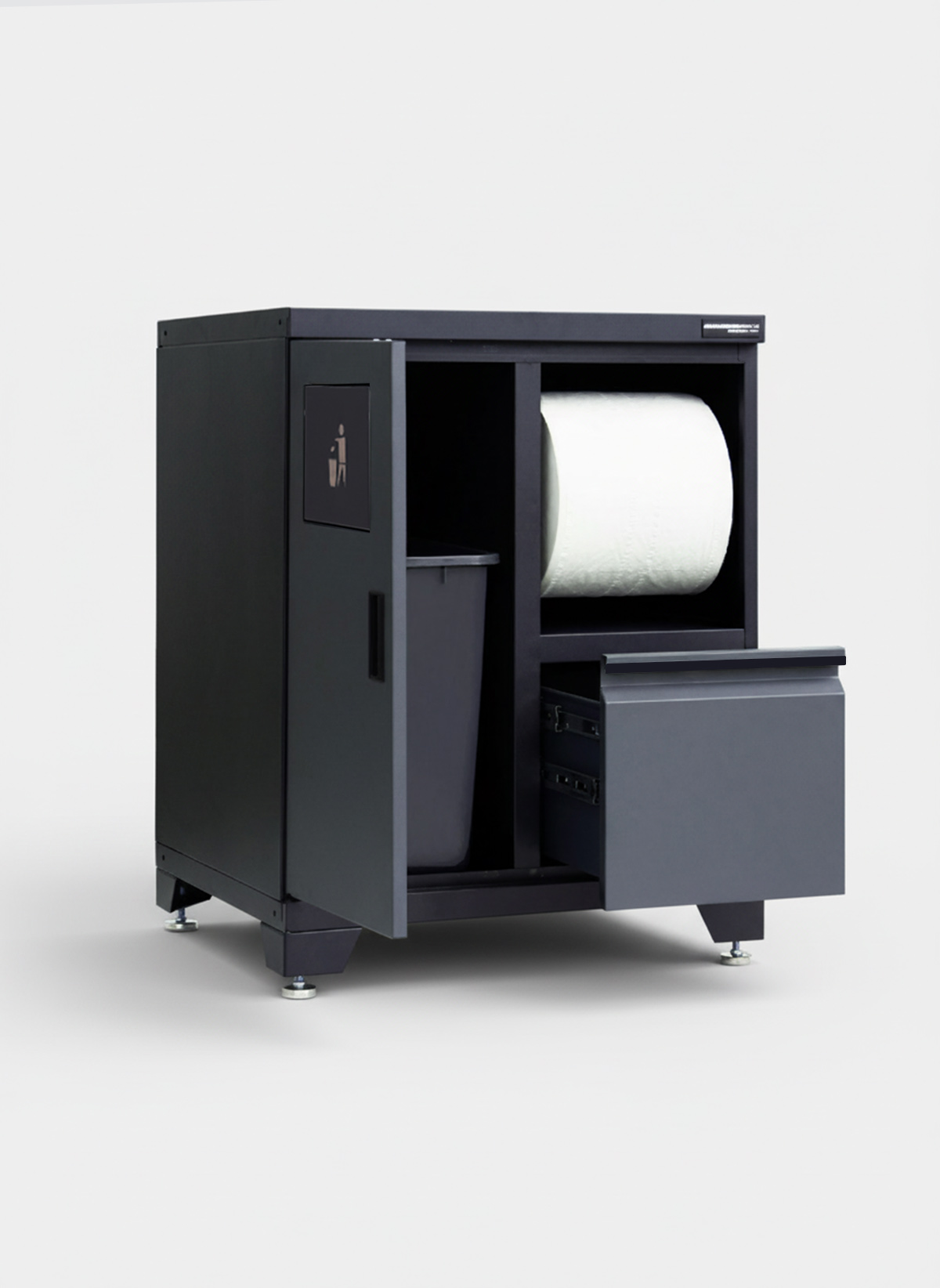 Avfallskåp är ett utmärkt komplement till alla garageinredningar. Ersätt den fula soptunnan som ofta kan stå i vägen och få bort skräp som annars kan samlas och ta upp plats på arbetsbänken. Med denna enhet har du både tork- och avfallshantering snyggt integrerat i garageinredningen.