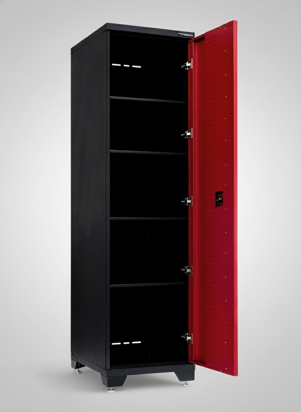 Fyra medföljande hyllplan med en kapacitet på 60kg/hyllplan gör att du inte behöver oroa dig för att lasta för tungt. Dörrarna stängs med mjukstängning och med kraftfulla magneter hålls skåpdörrarna säkert stängda. För extra säkerhet är dessutom alla våra skåpdörrar låsbara. Väderbeständig pulverlackerad stålkonstruktion gör att skåpet är byggt för att hålla i tuffa garage- eller verkstadsmiljöer.