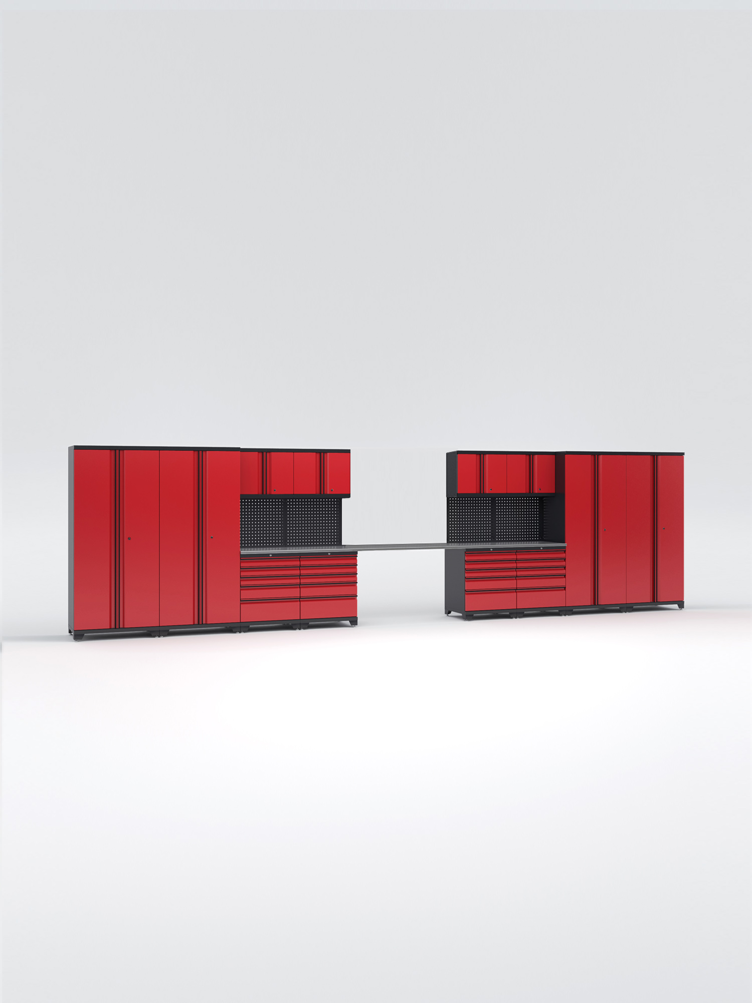 Garageinredning med 12 delar – set 3, Black edition – Röd, PRO