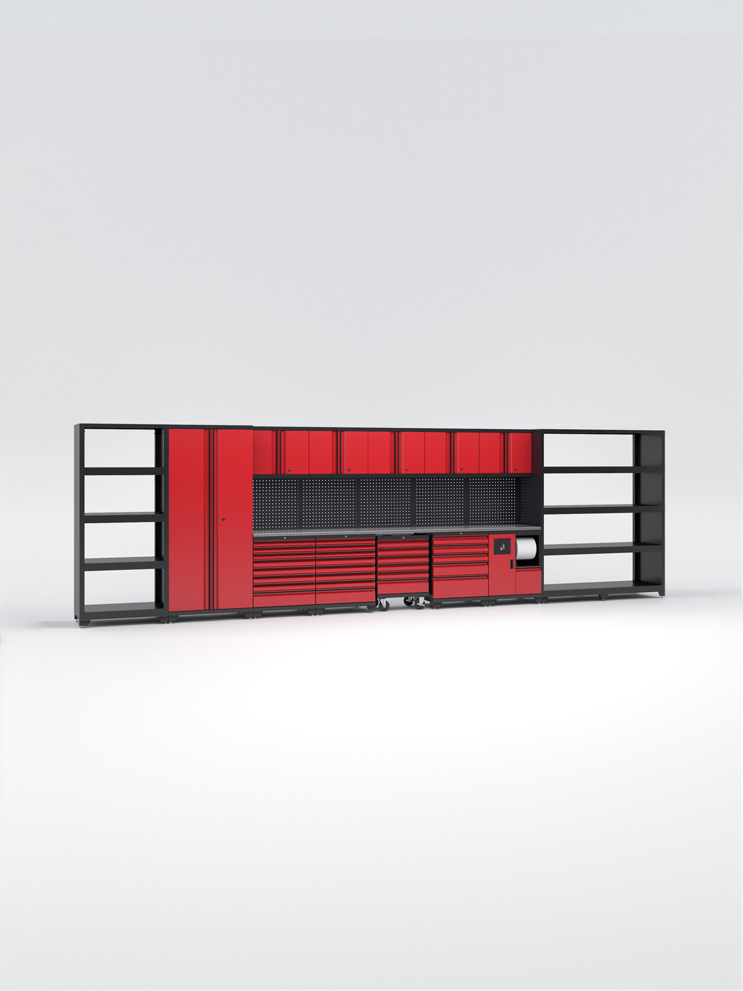 Garageinredning med 13 delar – set 1, Black edition – Röd, PRO