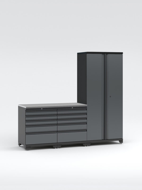 Ett förvaringspaket med bra variation av förvaringsutrymmen. Bredd 233cm. Bänkskiva ingår ej.