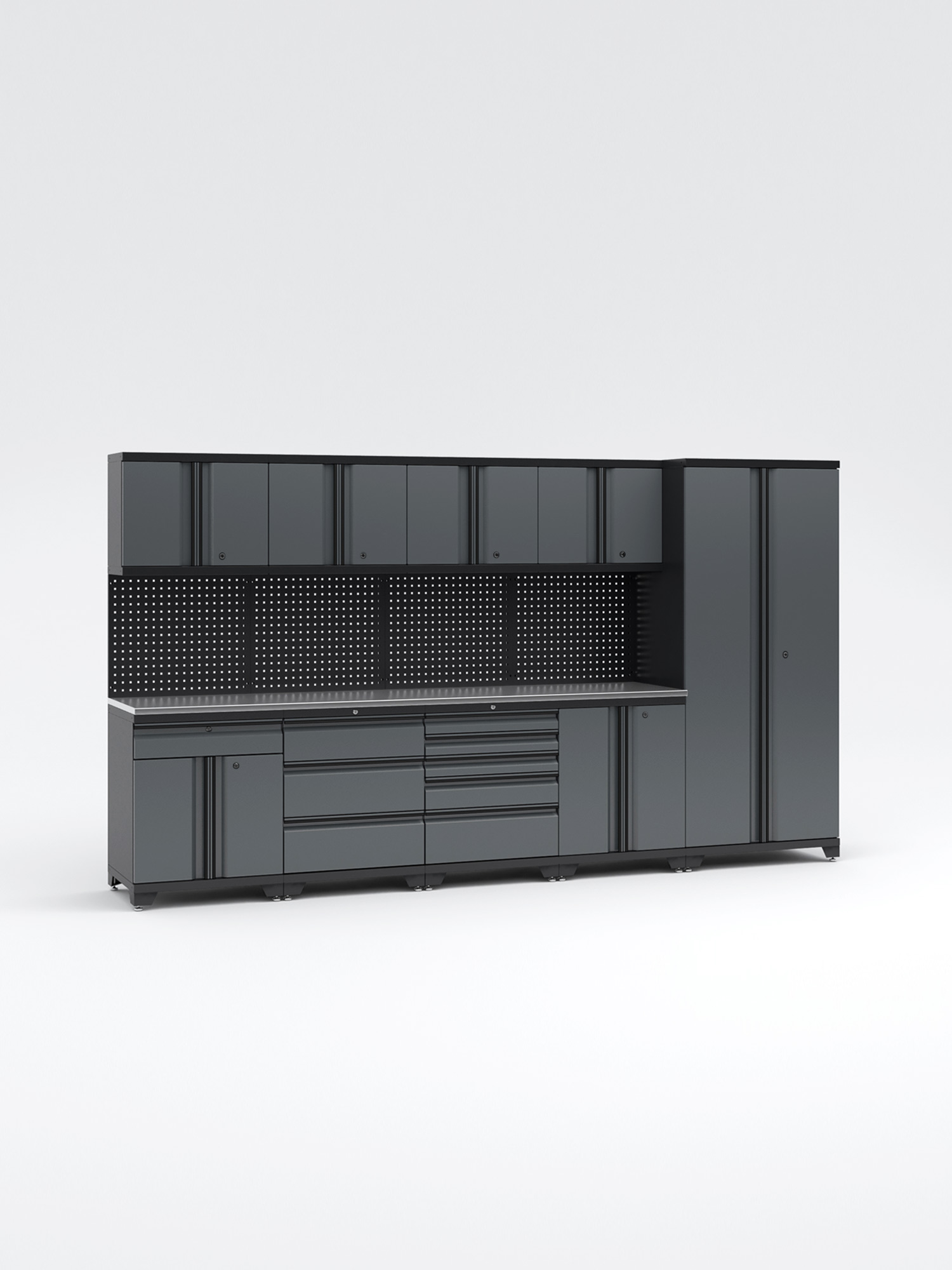 Garageinredning med 9 delar – set 2, Black edition – Grå, PRO