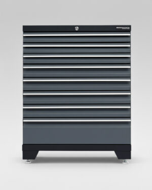 Detta skåp med 8 lådor levereras färdigmonterat och låsbara med ett centrallåssystem för extra säkerhet. Alla lådor har aluminiumlister på handtag, kullagerskenor med fullt utdragsdjup och svarta EVA antiglidmatta.