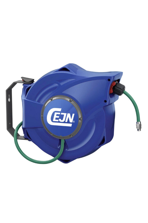 CEJNs slangupprullare för vatten är idealisk för avspolning, vätskepåfyllning och avsköljning. De är även utmärkta alternativ för tryckluft i fuktiga och våta miljöer. När de enbart används för vatten gör dess gröna färg den urskiljbar från CEJNs slangupprullare med tryckluft. Matarslang ingår.