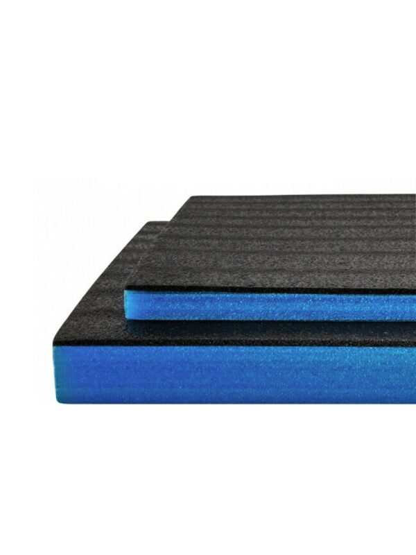 30mm eller 50mm tjock foam, typ Kaizen/Shadow Foam, som är uppbyggd av flera lager färgat skum + 1 svart topplager. Genom detta får du ett svart smutståligt topplager med en snygg kontrast färg i utskärningarna som gör det extra tydligt vart dina verktyg ska läggas.