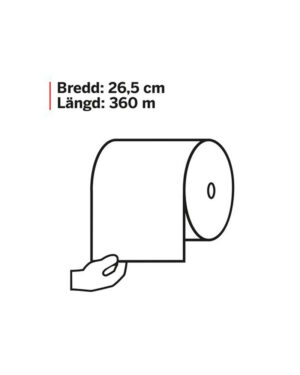 Då rullen är perforerad drar man enkelt av torkark i storlek 26x38cm.