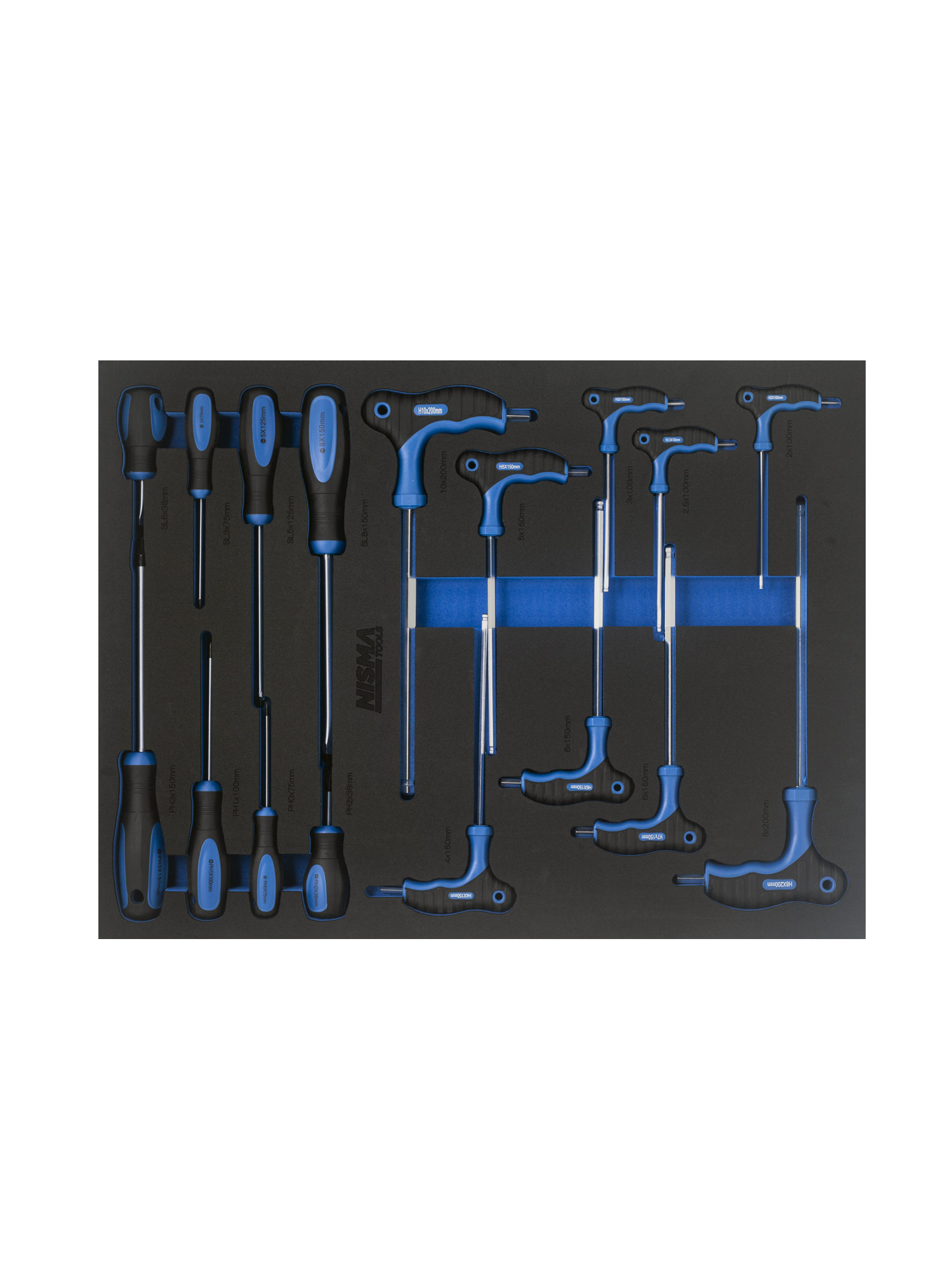17st delar t-nycklar och skruvmejslar i foam inlägg.