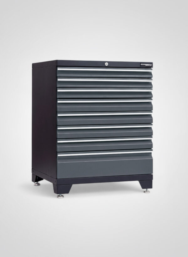 Detta skåp med 8 lådor levereras färdigmonterat och låsbara med ett centrallåssystem för extra säkerhet. Alla lådor har aluminiumlister på handtag, kullagerskenor med fullt utdragsdjup och svarta EVA antiglidmatta.