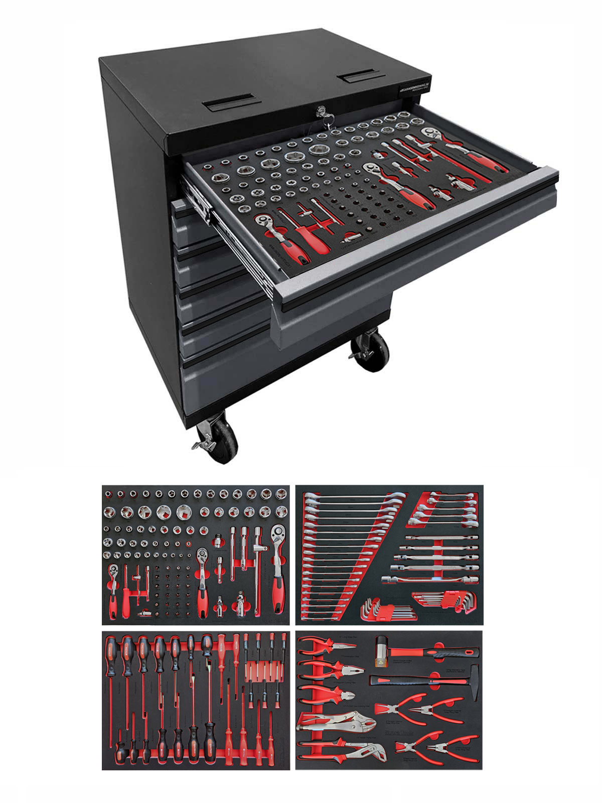 Verktygsvagn i vår PRO serie med verktyg 176 delar i formgjuten EVA-skum.