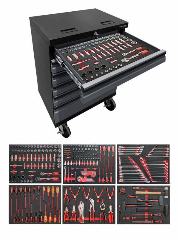 Verktygsvagn i vår PRO serie med verktyg 275 delar i formgjuten EVA-skum.
