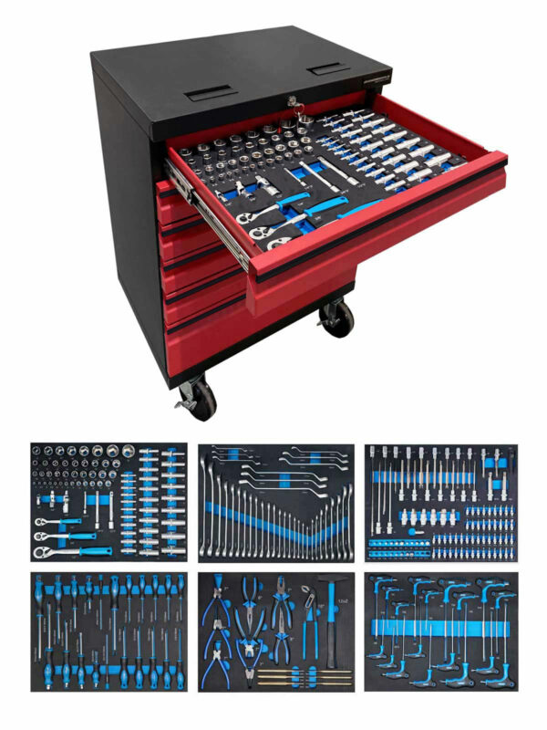 Verktygsvagn i vår PRO serie med verktyg 273 delar i formgjuten EVA-skum.
