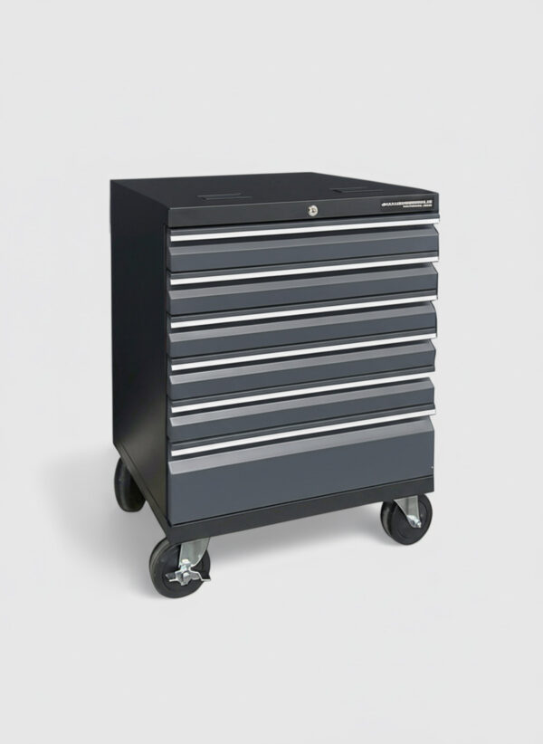 Högkvalitativ verktygsvagn i som är anpassad måttmässigt att ersätta ett golvskåp. Försedd med hjul som gör det enkelt dra ut vagnen till din arbetsplats och därefter styra in den under arbetsbänken igen. De sex lådorna ger gott om förvaringsutrymme för dina verktyg.