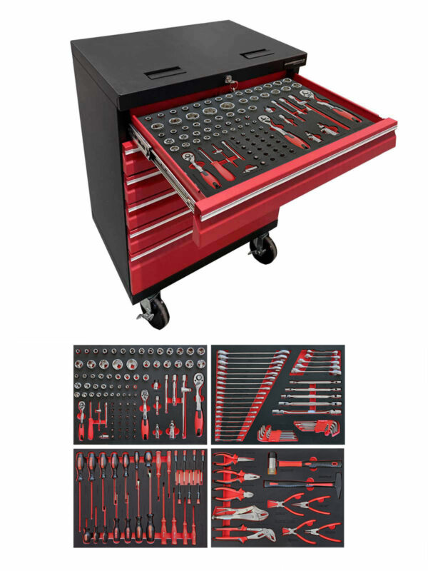 Verktygsvagn i vår PRO serie med verktyg 176 delar i formgjuten EVA-skum.